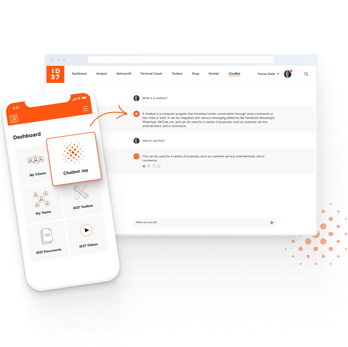 Der Testnehmer oder die Testnehmerin füllt einen Online-Fragebogen aus, der aus 144 selbstbeschreibenden Aussagen zu alltäglichen Verhaltensweisen, Einstellungen und Gewohnheiten besteht. Der Algorithmus berechnet daraus die Ausprägung auf allen 16 Lebensmotiven und erstellt das ID37 Persönlichkeitsprofil und den interaktiven Analysereport, der erklärt, was die Ausprägungen bedeuten. Ergänzend kann der KI-Coach für die Interpretation herangezogen werden. Für maximale Qualität buchen die Testnehmer:innen ein Analysegespräch mit einem ID37 Master.